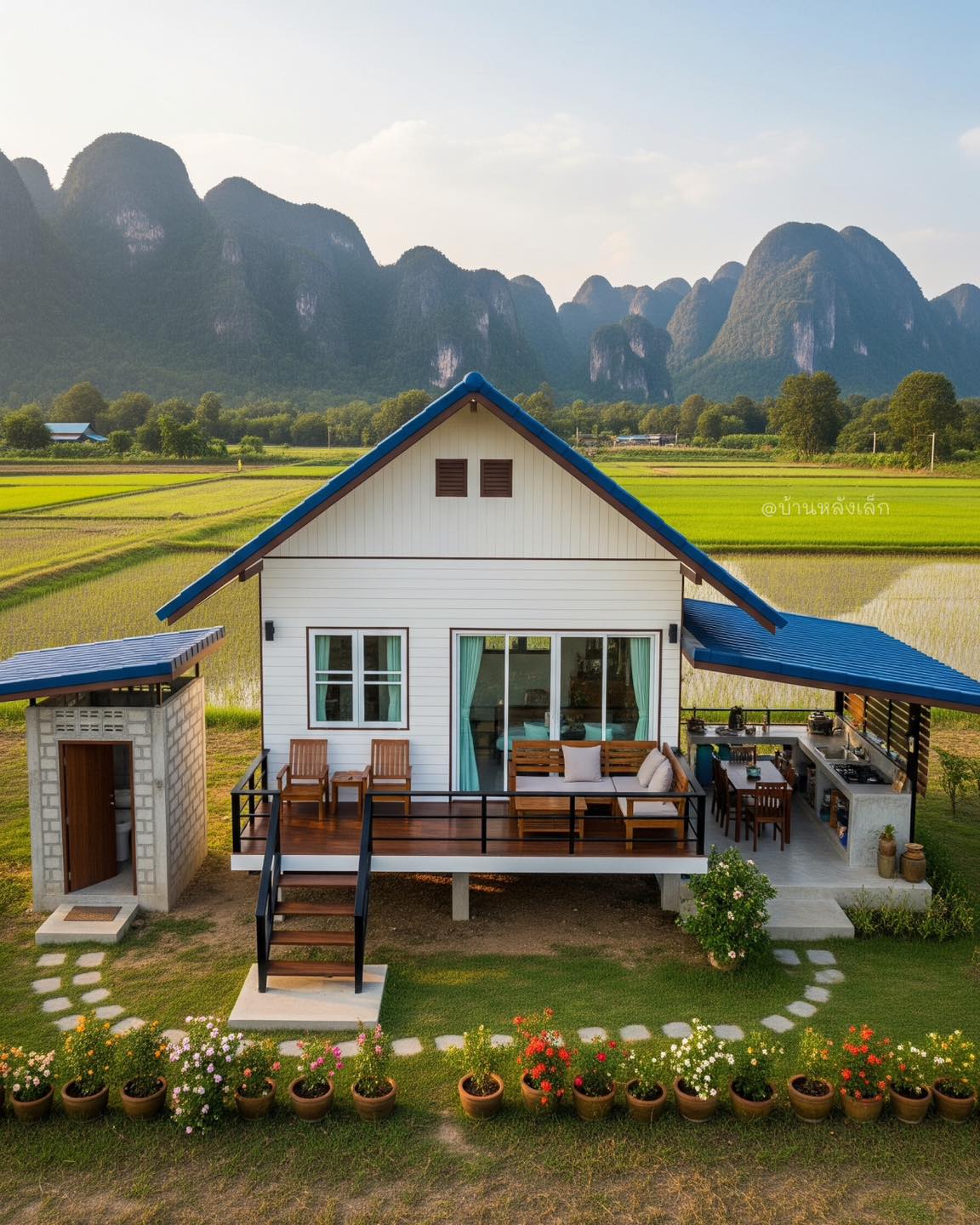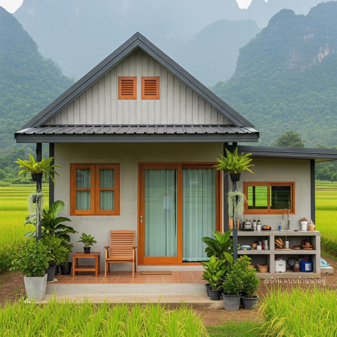 Nhà mái dốc nhỏ gọn + bếp tách ngoài bên hông