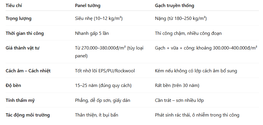 Tuy nhiên, không phải công trình nào cũng phù hợp 100% với Panel. Giải pháp khôn ngoan là kết hợp cả hai: tường ngoài dùng Panel, các khu vực đặc biệt (như móng, phòng chống cháy, phòng an ninh) dùng gạch – vừa tiết kiệm, vừa an toàn.
